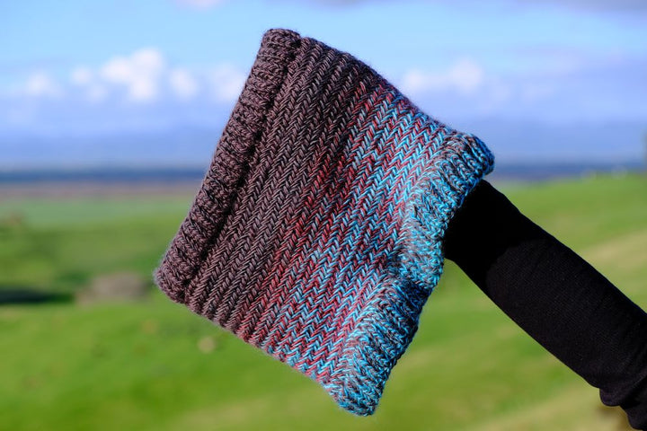Brushstroke Cowl is the companion of my other pattern Brushstroke Hat and they were both designed to highlight hand-painted and variegated colourways, combining two of my favourite stitches- brioche and herringbone.