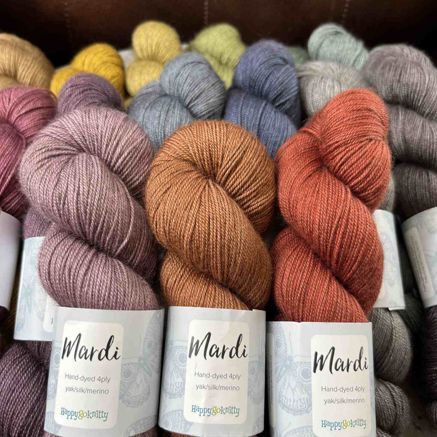This beautiful yarn is hand-dyed right here in Aotearoa by Helene of Happy Go Knitty.
