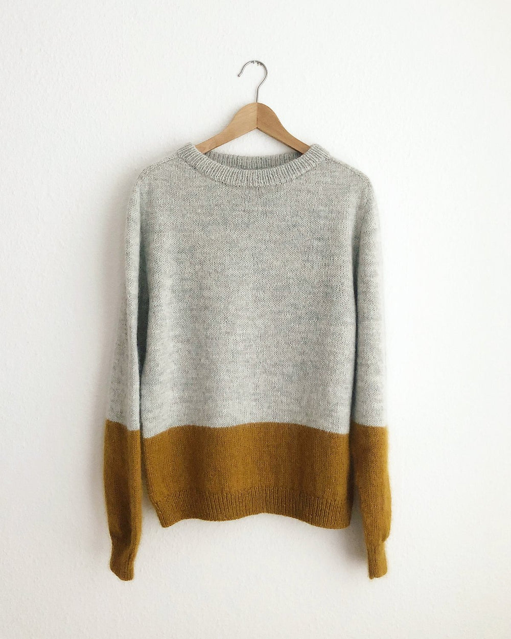 The Contrast Sweater has a color change 2/3 down the sweater.