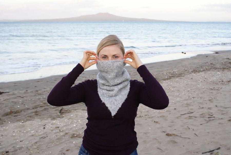 The Fuzzy Wumbus Cowl is an ultra cozy bandana-style cowl knit seamlessly in the round from the top down. Designed to be practical and comfortable, it fits well under a jacket or cardigan and is snug enough to keep you properly warm in winter.
