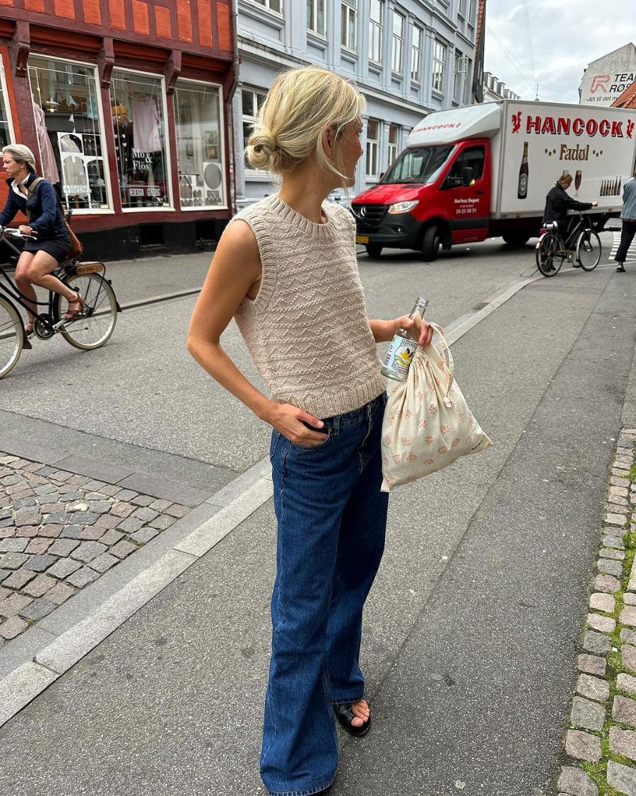 The Sille Slipover is worked from the top down in a knit and purl structure pattern. First the back yoke is worked, then the shoulders, and then the front yoke are worked flat. After this, the front and back yoke are joined and the body is worked in the round, and finally rib edges are worked along the neck and armhole openings.