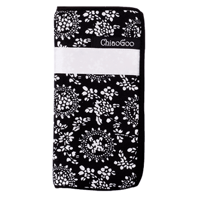 This compact, cotton-fabric case has six inside pockets to hold 6″(15 cm) double points or crochet hooks. The case opens book style with a complete zipper enclosure. It has a small zippered pocket on the outside for notions.