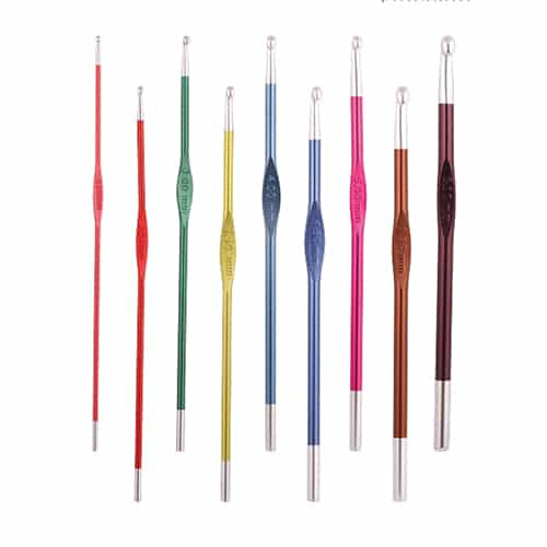 The Zing single ended crochet hooks include all the features of Zing, they are light, warm up quickly during use and are very easy to crochet with. The bright vibrant colours are an added bonus, and the beautiful silver tips provide a perfect finish every time.