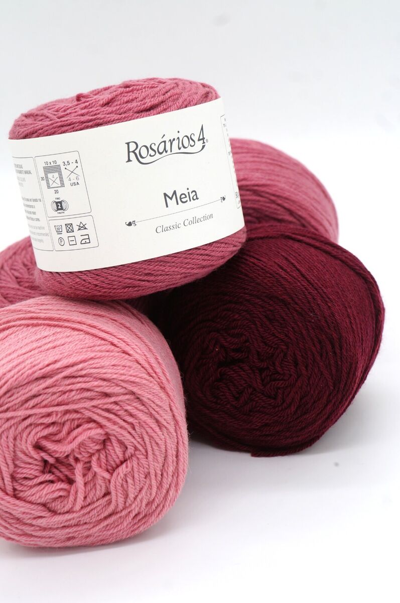 Rosarios4 Meia is a soft classic sock yarn that comes in a wide range of beautiful solid colours. Perfect for socks that feature colorwork, lace and cable motifs, and just solid vanilla socks!