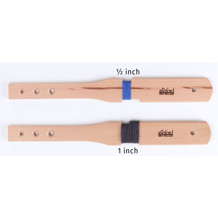 The Diz Stick features: Three specifically designed sliver-diameter holes. Two yarn gauge options - 1 inch and 1/2 inch spaces. Comfortable length to hold and avoid your knuckles being scratched on the drum carder cloth.