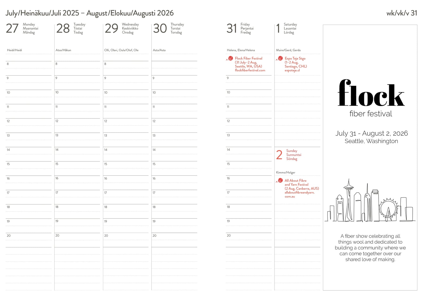 Much more than just a planner, Knitter’s Year 2026 is a beautifully designed and practical companion, tailored especially for knitters and makers. Thoughtfully crafted, it offers ample space for jotting down notes, sketching project ideas and staying inspired all year long. With listings for over 120 fibre and knitting events worldwide, this planner helps you organise your days while staying connected to the vibrant and ever-growing crafting community. Whether you are a passionate knitter or work in the yarn industry, this is the perfect everyday tool.